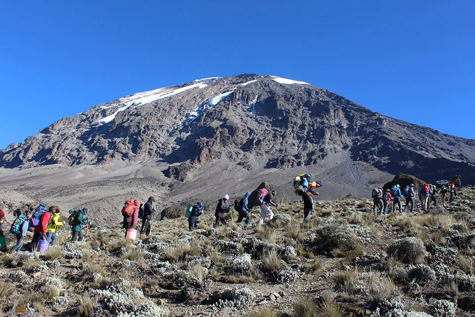 Today’s trek passes through the heather and moorland zones and the views of Mawenzi and the vast Kenyan steppes are nothing short of grand. You will have lunch at the Second Cave (3,450 m) and after a short break, you will cross the undulating terrain to Kikelewa Camp. This camp boasts with incredible views and after a strenuous day’s climb, you can relax and take in its peaceful ambience.
